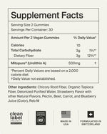 Mitopure Gummies are vegan, gluten-free and sugar-free. They are made without milk, eggs, nuts, crustaceans, shellfish, wheat, soy and sesame.